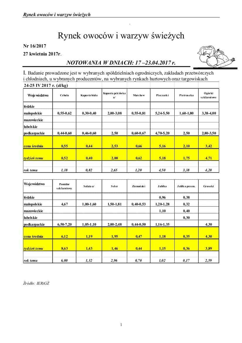 Badanie prowadzone jest w wybranych spółdzielniach ogrodniczych, zakładach przetwórczych i chłodniach, u wybranych producentów, na wybranych rynkach hurtowych oraz targowiskach, dane pochodzą z MRiRW.