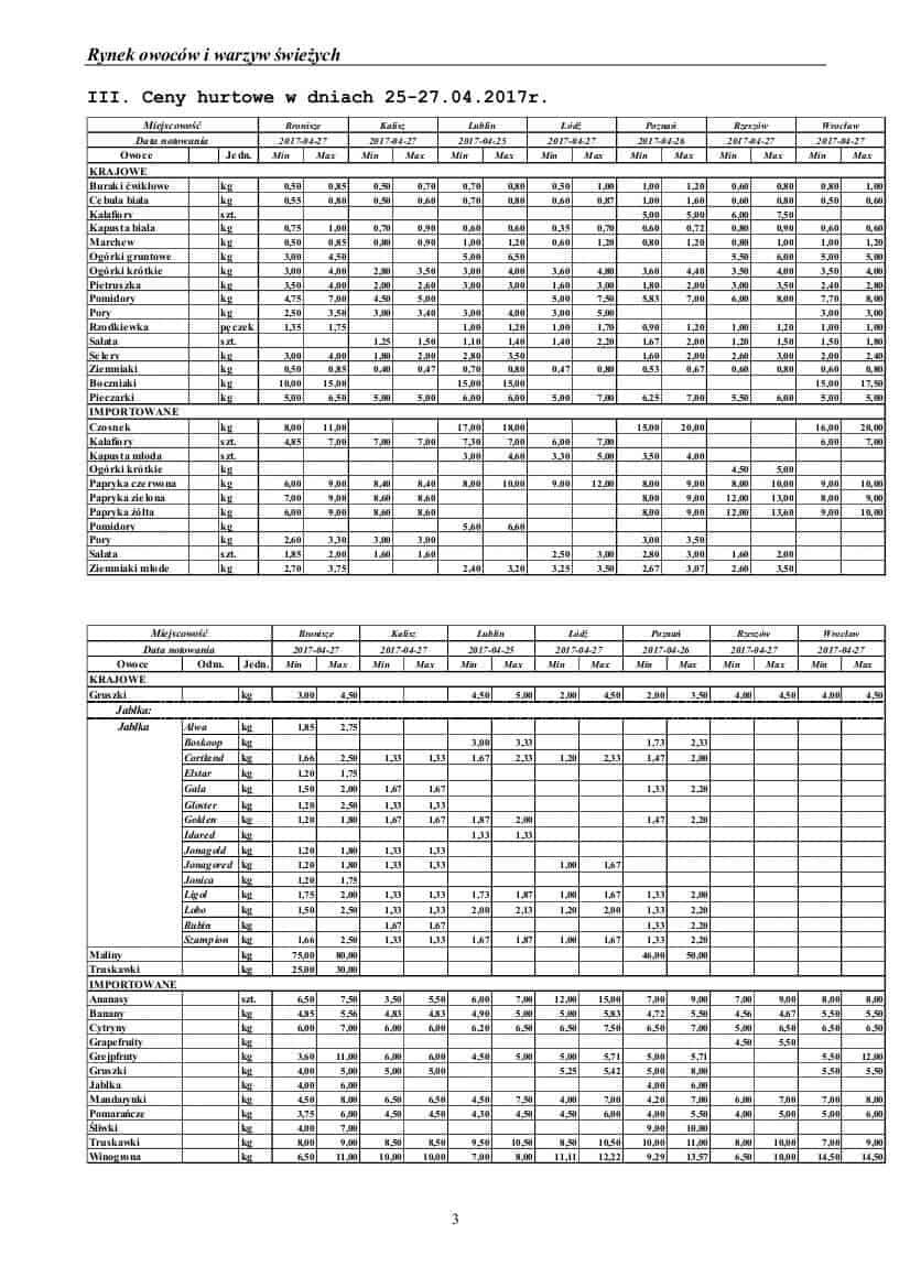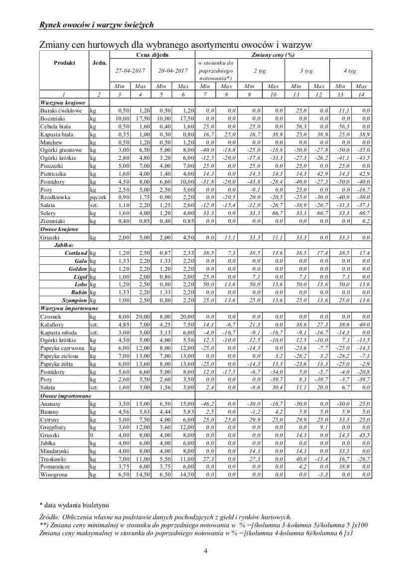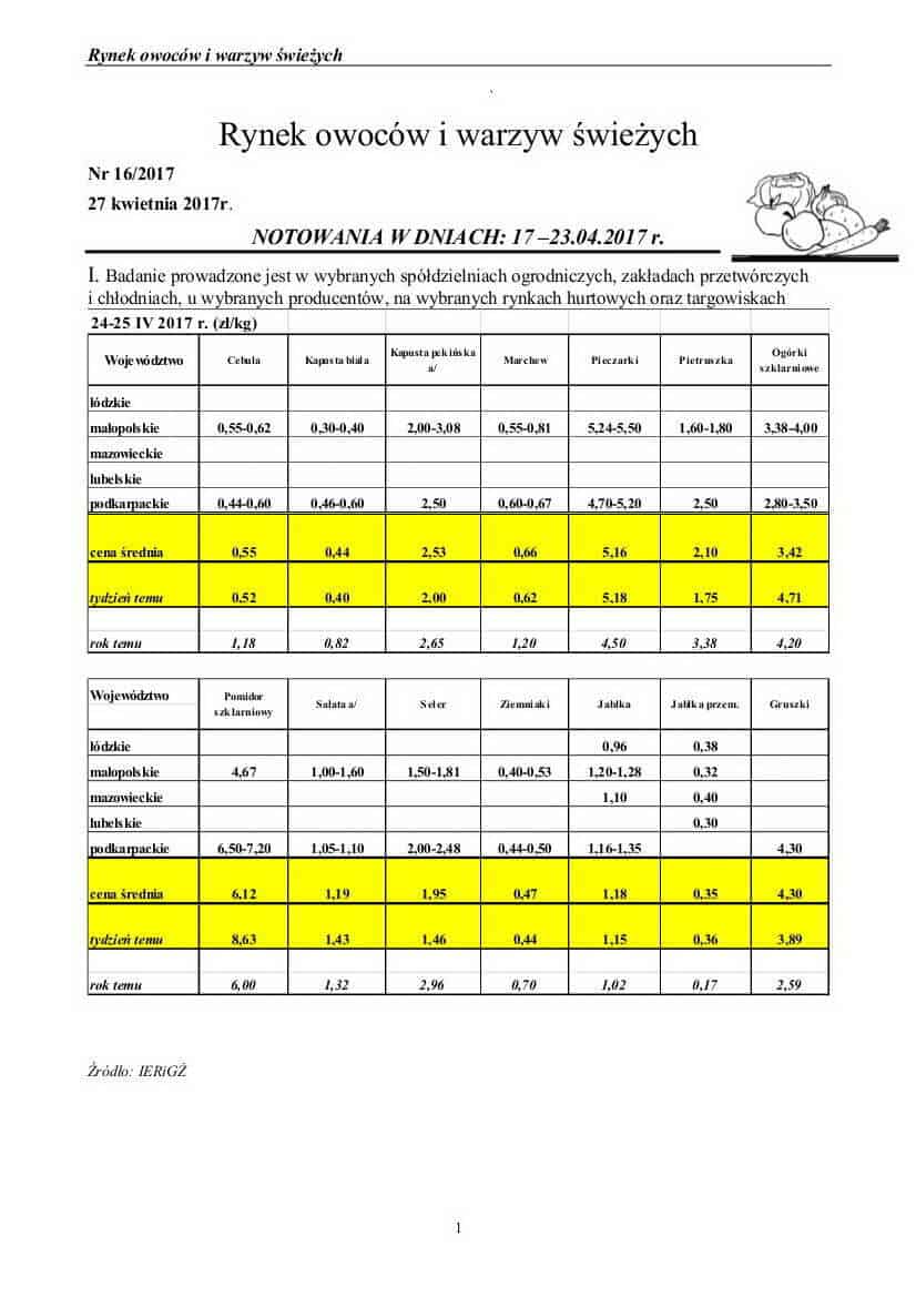 Badanie prowadzone jest w wybranych spółdzielniach ogrodniczych, zakładach przetwórczych i chłodniach, u wybranych producentów, na wybranych rynkach hurtowych oraz targowiskach, dane pochodzą z MRiRW.