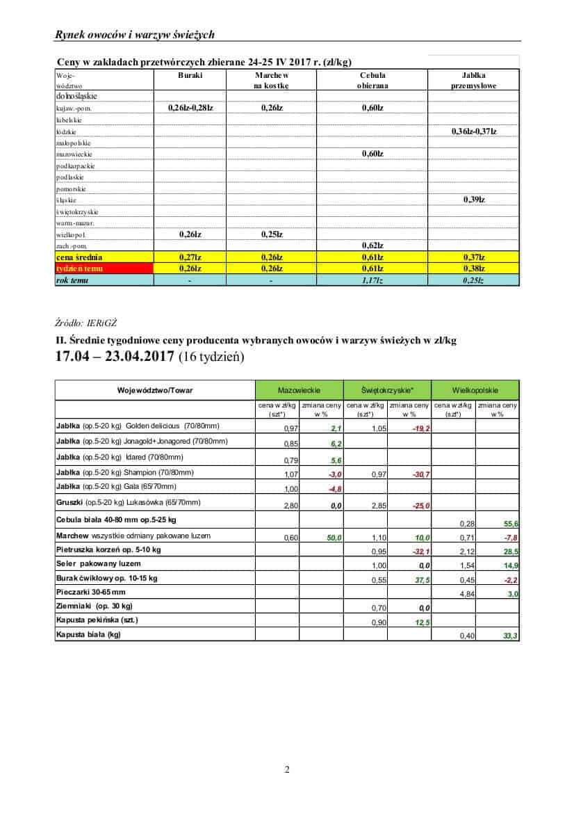 Ceny jabłek 17 – 27 kwietnia
