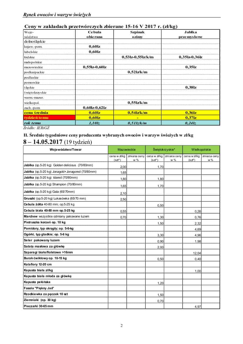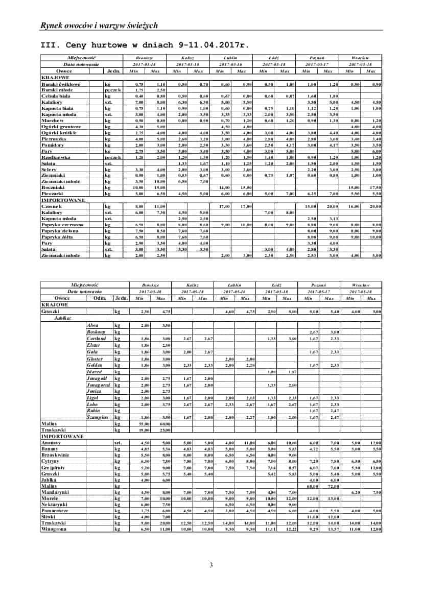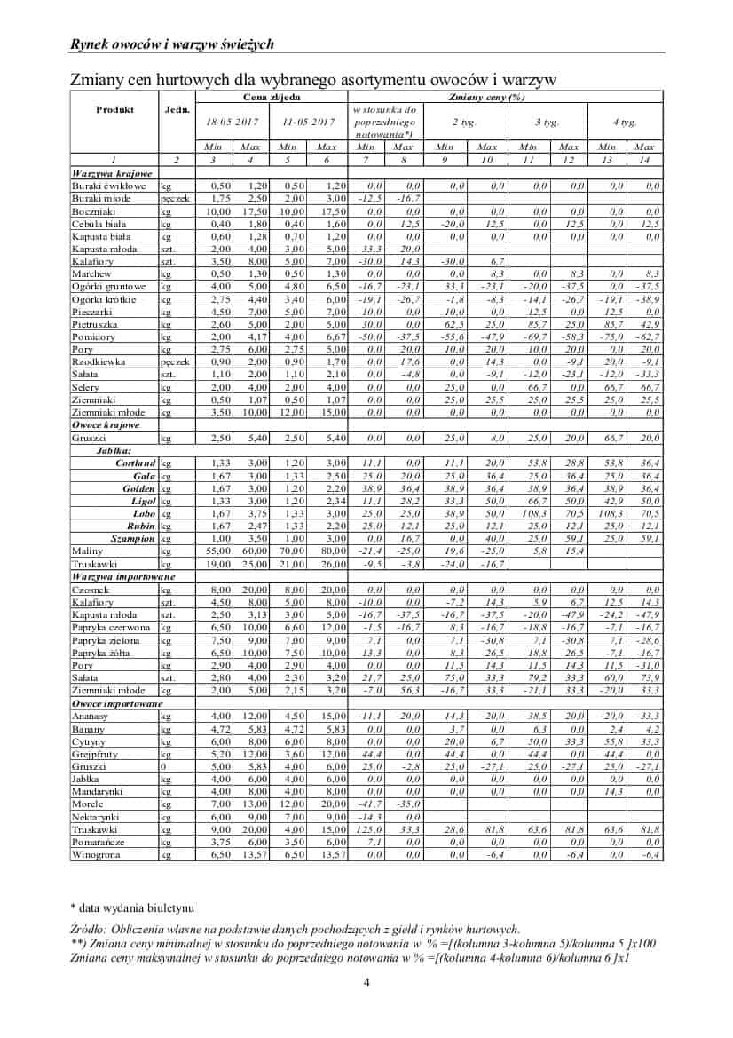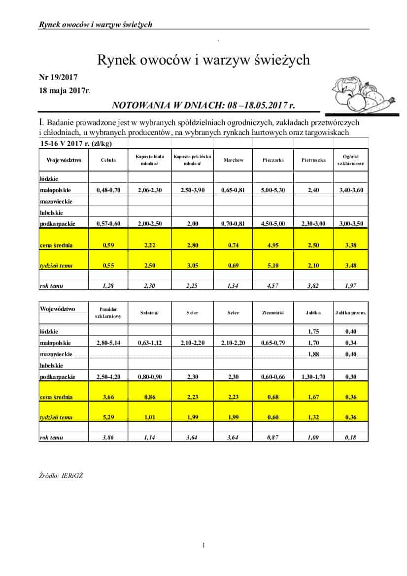 Badanie prowadzone jest w wybranych spółdzielniach ogrodniczych, zakładach przetwórczych i chłodniach, u wybranych producentów, na wybranych rynkach hurtowych oraz targowiskach, dane pochodzą z MRiRW.