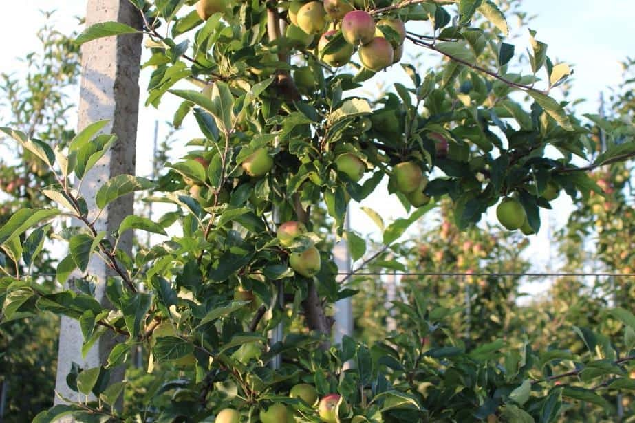 Drzewa z daleka wyglądają wspaniale. Jest to kwatera 4-letniej Gali Schniga SchniCo na M9, posiada nawadnianie kropelkowe i konstrukcje podtrzymujące ze strunobetonu. Liść jest zdrowy i odżywiony, wiosną tego roku drzewa zostały również podsypane solidną warstwą podłoża popieczarkowego. Do ochrony dokładano wszelkich starań, bo zawiązki wróżyły obfity zbiór.